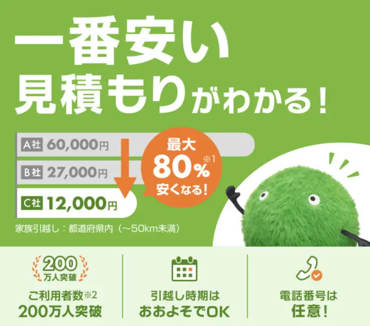 入力1分で引越し費用が分かる