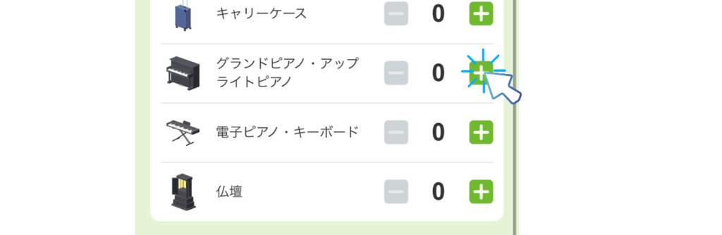 項目のピアノをクリック→完了ボタンを押すだけで見積もり金額が送られてきます。